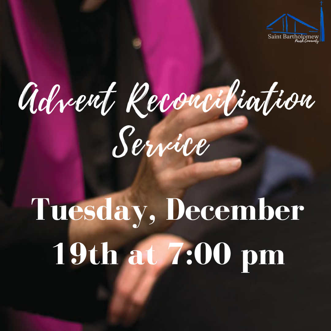 Join us on Tuesday, December 19th at 7:00 pm for our Parish Reconciliation Service.