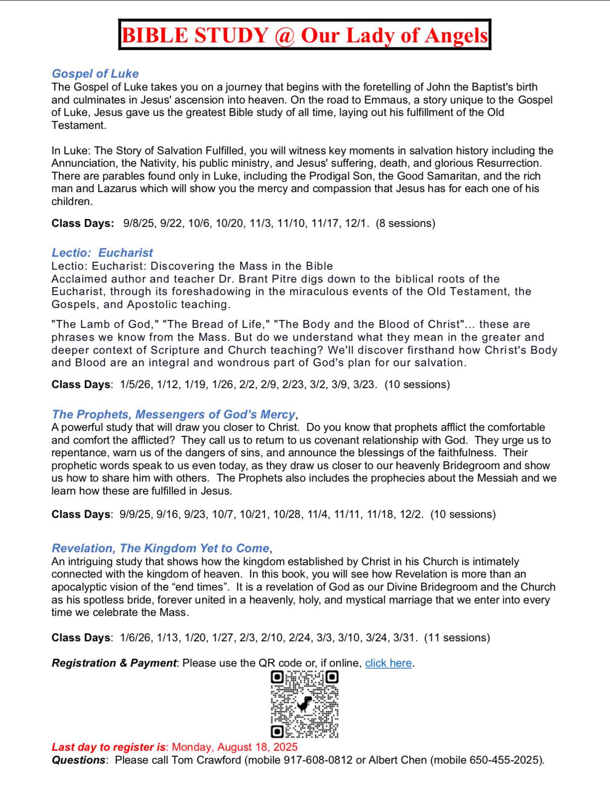 If you have further questions or for more information, please contact our Parish Manager, Heather Bernat.
